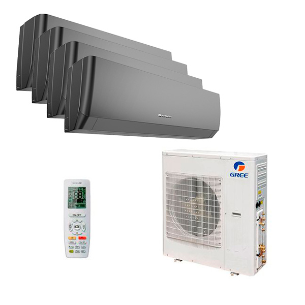 Для большого помещения или многокомнатной квартиры можно использовать не только обычным сплит-системы, но и целый комплект, который будет состоять из 1 наружного блока и нескольких внутренних блоков. Мультисплит система Gree GWH09AGCXB-K6DNA4F/I x 4 / GWHD(36)NK6LO(LCLH) включает в себя 4 настенных блока серии Pular Black и один внешний блок из серии Free Match R32. Управляет каждый из блоков индивидуально в пределах установленного режима: или на обогрев или на охлаждение.